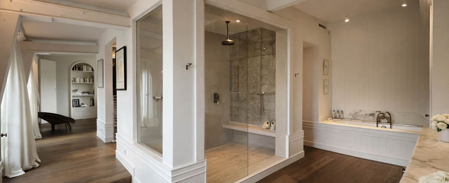 Le projet respecte l’âme architecturale du Marais : moulures, proportions classiques, détails anciens soigneusement restaurés. L’intervention contemporaine reste discrète, au service du confort et de la fonctionnalité. Un équilibre entre patrimoine et art de vivre, où l’esprit parisien rencontre la sérénité d’une maison à la campagne.